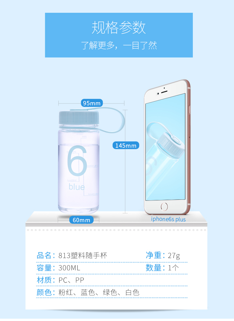 產品特點:813塑料隨手杯,300ML容量,材質:PC/PP,凈重27G,食品級材質長期使用對人體沒有傷害