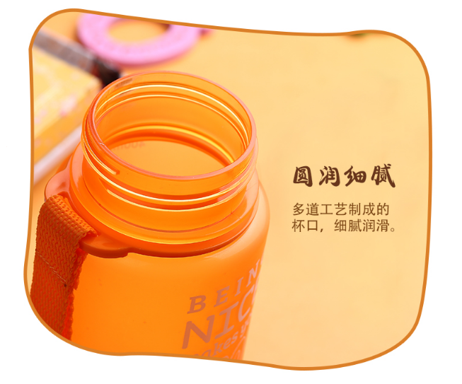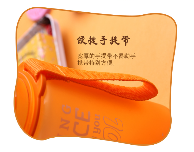 食品用PC材質(zhì),月牙弧形纖細(xì)腰身,加寬加長(zhǎng)提繩,外出攜帶方便,讓您喝的放心的水杯。